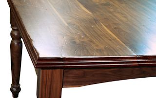 A distressed finish can provide a worn or rustic look that truly stands out! Distressing can be done in several levels from light to heavy where we add dings, worm holes, slight gouges, wear patterns, and other marks to the top. We will work with you to get the level of distressing and the wear patterns you want. See the photos below for some examples of distressing on tops.