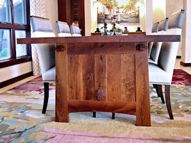 Custom Jatoba trestle style dining table with mortise and tenon jointery.