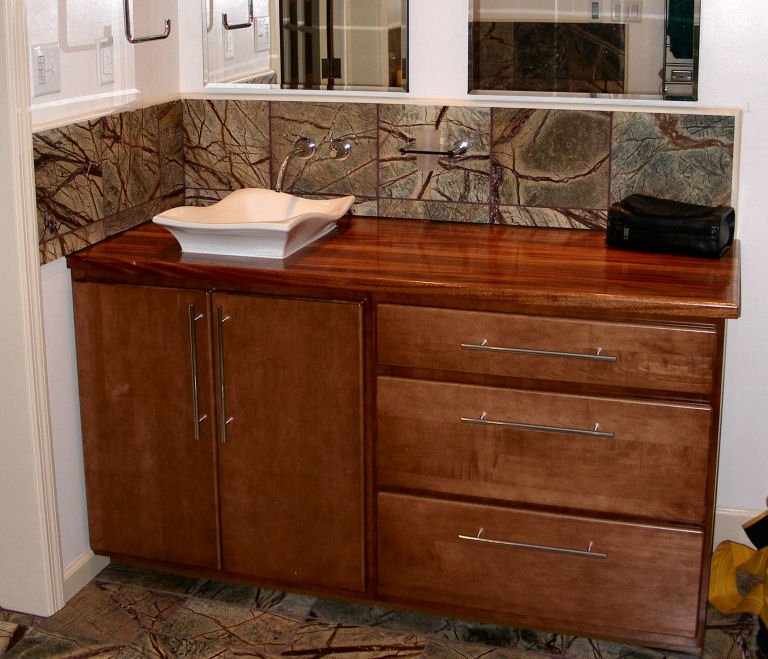 African Mahogany Vanity Top and Bathroom shelf