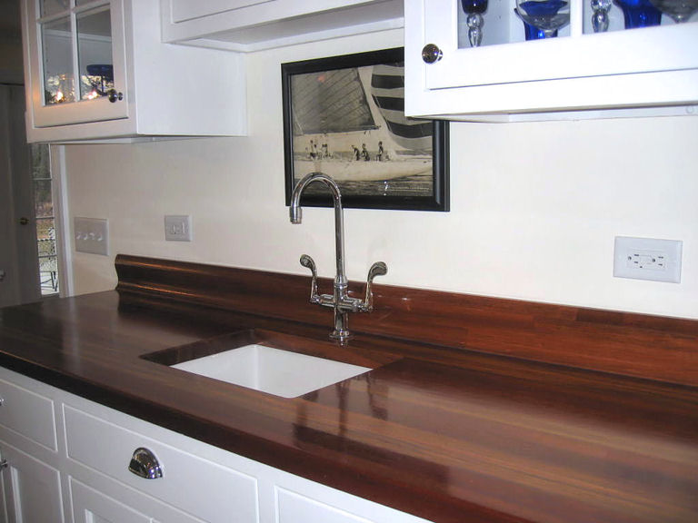 Edge Grain Island Top and Countertops with Custom-Shaped Backsplash