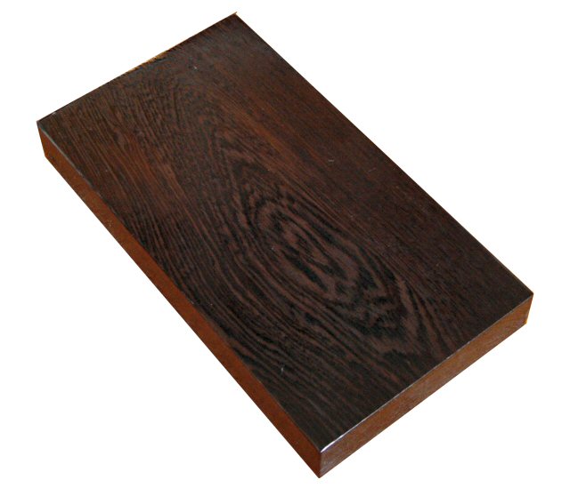 General Description: Wenge is a uniform dark chocolate brown color that is used primarily where a bold dark color or contrasting light and dark accent strips are desired. Janka Hardness: 1630 Color: When freshly cut, the heartwood of wenge is a yellow-brown color, but then in a few months it darkens to a deep, uniform brown, almost black, with alternate layers of light and dark tissue, forming a decorative figure. Wenge, once aged is very uniform in color. Color Change: Wenge exhibits a large degree of color change with pronounced darkening from the yellowish color it is when freshly milled to a deep chocolate/black brown when aged. This process happens within a few months. Grain: This coarse-textured wood has a straight grain. Finishing: Water based finishes work well, but some oil finishes may not dry well when applied to this wood. Characteristics: Wenge is very hard, heavy, and durable, with an excellent dimensional stability. |