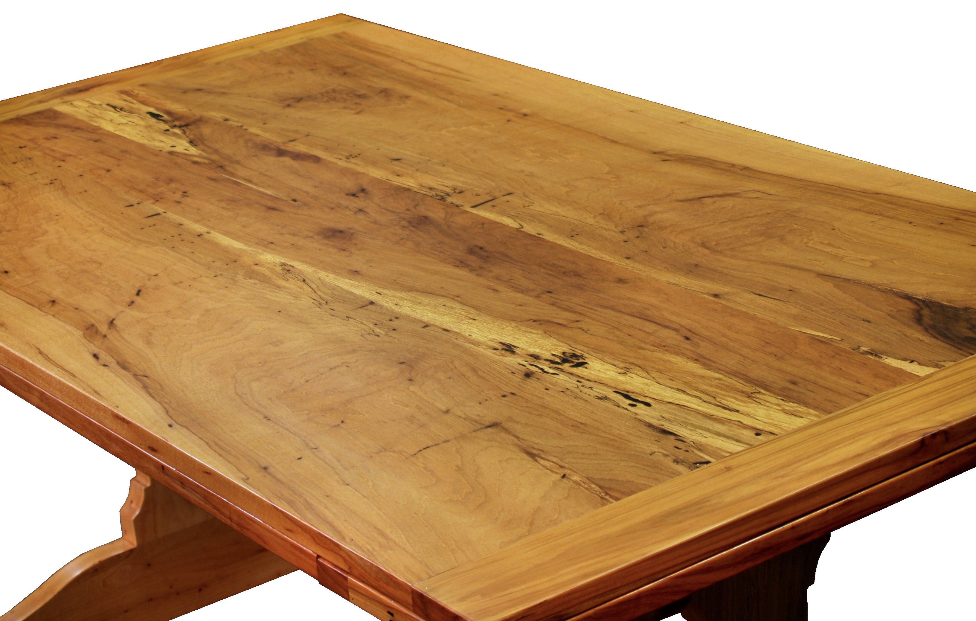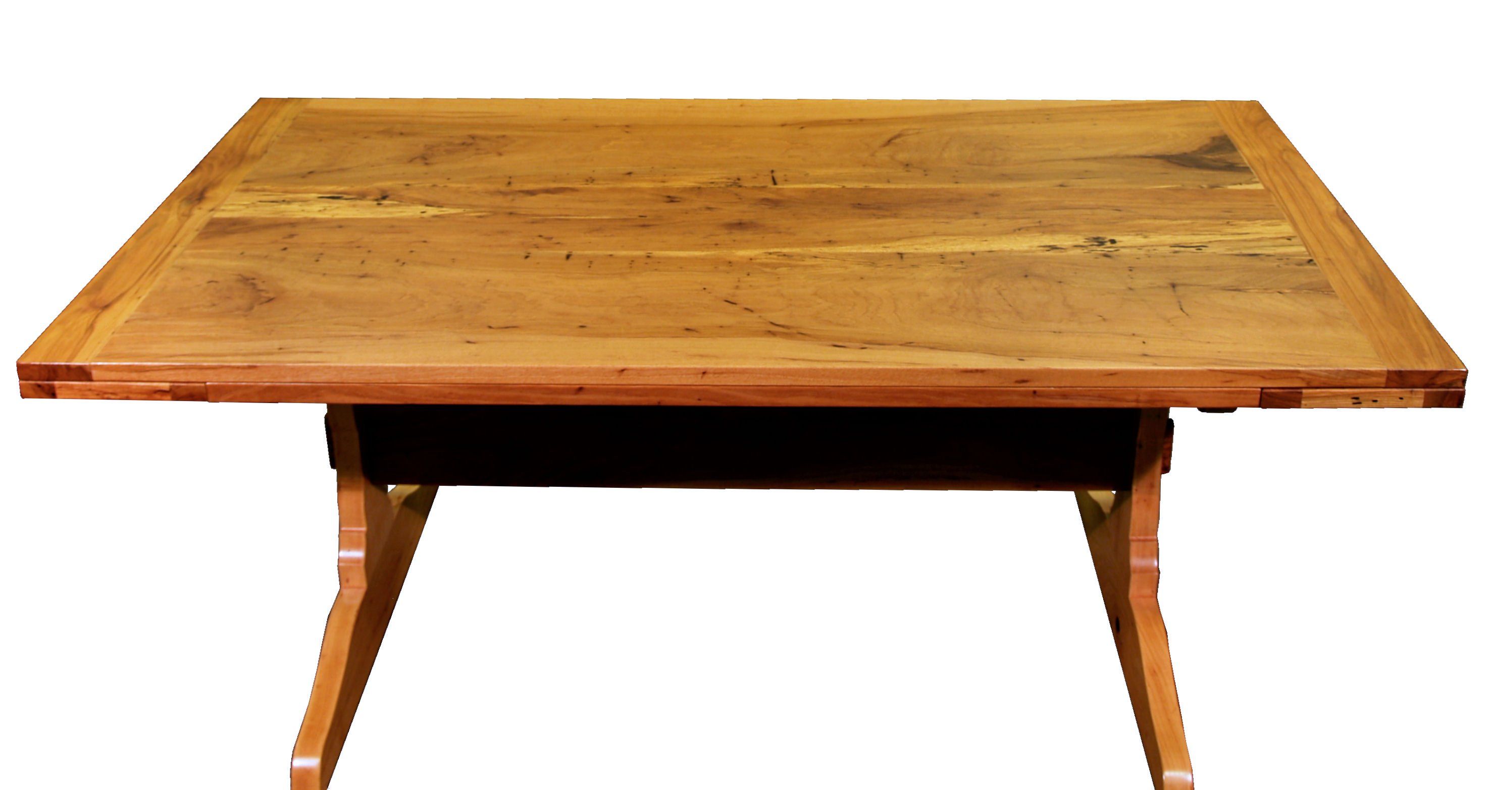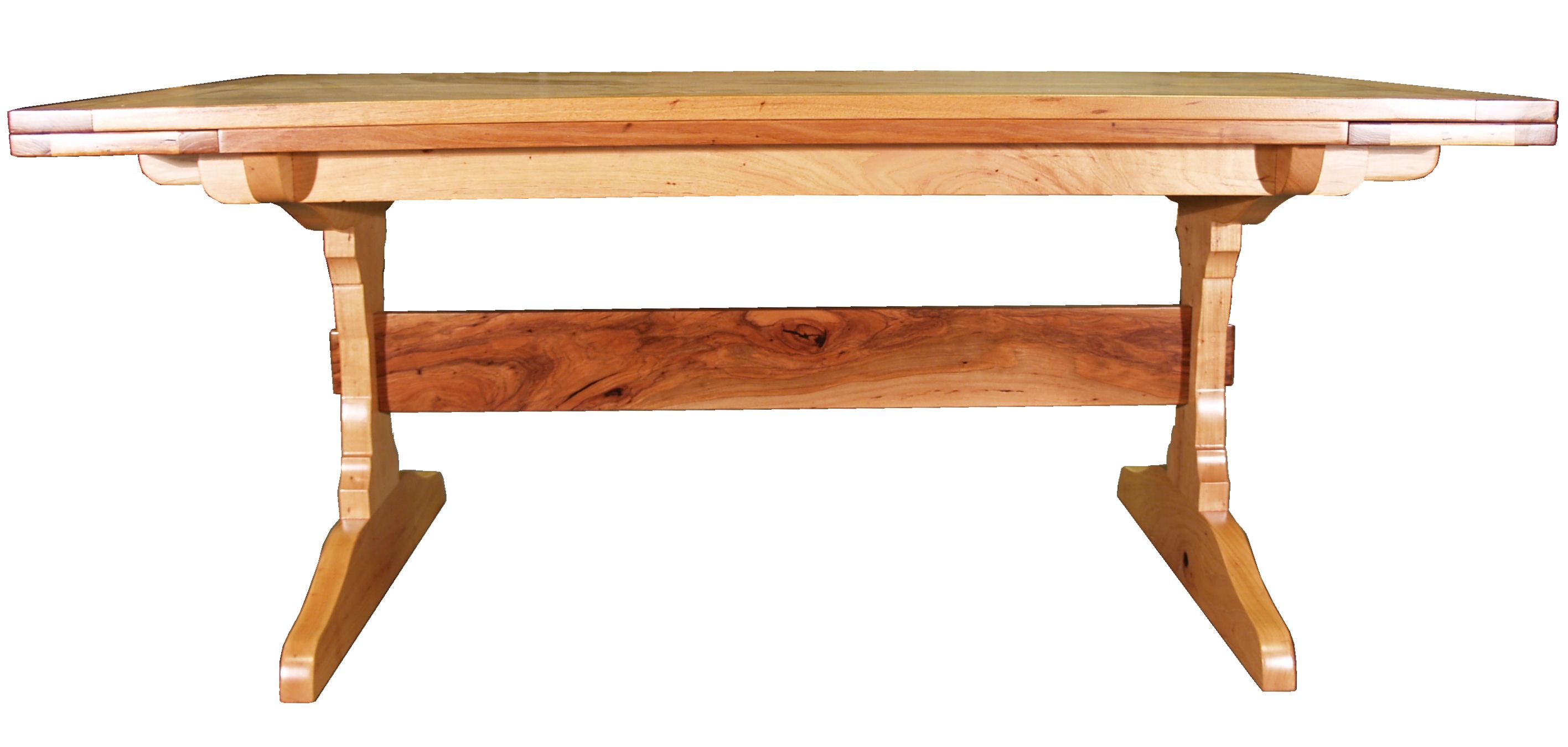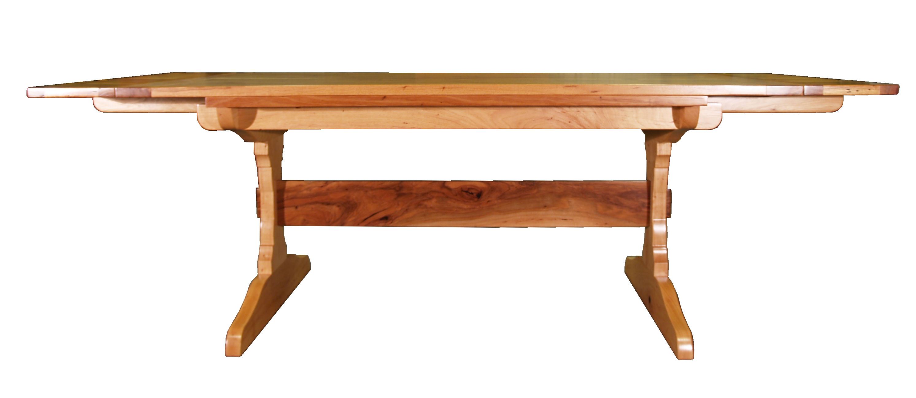 Cherry trestle style penninsula table with hard maple accents.